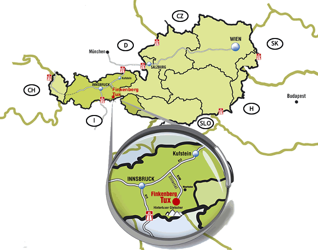 Entfernung Flughafen: Innsbruck 90 km, München 230 km, Salzburg 160 km
